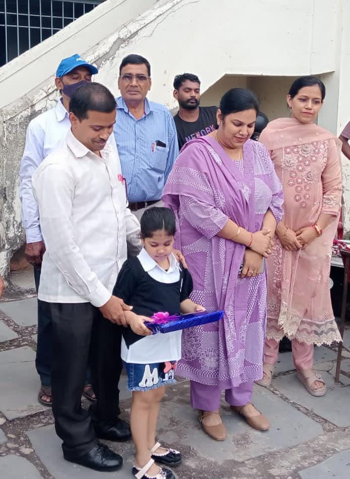 जनता शिक्षण समिति नहरपार कैंप दो के तत्वाधान में संचालित जनता उच्चतर माध्यमिक विद्यालय एवं जनता इंग्लिश मीडियम स्कूल में मेंMN ज्वेलर्स सुपेला एवं डॉ अग्रवाल होम्योपैथी सुपेला भिलाई के तरफ से कनिका अग्रवाल की पुत्री मीषा अग्रवाल के जन्म दिवस के शुभअवसर पर स्कूल के छात्र-छात्राओं को नेवता भोज का कार्यक्रम विद्यालय में कराया गया इस अवसर पर कनिका अग्रवाल (MN ज्वेलर्स), डॉक्टर मनोज अग्रवाल एवं श्रीमती पायल अग्रवाल ने अपने हाथों से बच्चों को भोजन वितरित किया ! शाला के. प्राचार्य श्री सी पी चौधरी, ने कार्यक्रम के अंत में अग्रवाल परिवार का आभार व्यक्त किया इस अवसर पर विद्यालय के शिक्षक श्री अरुण द्विवेदी, श्री जैन मिश्रा, श्री अरुण कुमार., टी पांडे., कमलेश कुमार, विनोद कापसे, नीलिमा अवस्थी, नेहा, प्राची, नाहिद, रेणुका जंघेल, सीमादेवांगन, शांति, रूपाली एवं अन्य शिक्षिकाओं ने मीषा अग्रवाल को जन्मदिन की शुभकामना दी.
