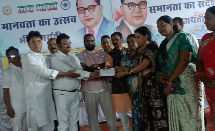 *समारोह के आरंभ मे अतिथियो द्वारा भारतीय संविधान के शिल्पकार डा.बाबासाहेब भीमराव आम्बेडकर के तैलचित्र के सम्मुख दीप प्रज्ज्वलित कर पुष्प अर्पित किये गए एवं त्रिशरण पंचशील का पठन गायन किया गया। दि बुद्धिस्ट सोसायटी ऑफ इंडिया छ.ग. द्वारा एम्स मे चिकित्सारत शांतिनगर निवासी कैंसर पीड़ित युवक को 20,500/- रूपए की नकद आर्थिक सहयोग राशि उनके इलाज मे सहयोग हेतु रश्मि भटनागर को प्रदान की गई। रश्मि भटनागर ने अपने उद्बोधन मे संस्था के इस नेक व पुनीत कार्य हेतु आभार व्यक्त किया। समारोह को संबोधित करते हुए दि बुद्धिस्ट सोसायटी ऑफ इंडिया के प्रदेश उपाध्यक्ष विनोद बंसोड ने कहा कि सन 1200 मे ब्रिटेन के बने मौखिक संविधान और 1827 मे बने अमेरिका के लिखित संविधान से कही ज्यादा महत्वपूर्ण व मूल्यवान 1950 मे डा.बाबासाहेब भीमराव आम्बेडकर द्वारा लिखा गया भारत का संविधान है क्योंकि यह विश्व के सबसे बड़े लोकतांत्रिक देश का लिखित संविधान है। दि बुद्धिस्ट सोसायटी ऑफ इंडिया के प्रदेश अध्यक्ष अनिल मेश्राम ने कहा कि डा.बाबासाहेब आम्बेडकर द्वारा घोर विषमता के दौर मे देश मे समता लाने के जो प्रयास किये गये वह एतिहासिक अभूतपूर्व व सर्व समाज के लिए अनुकरणीय है उन्होने कहा कि मानवता की सेवा मानव कल्याण का मार्ग और सामाजिक समानता के सिद्धांत भारतीय संविधान मे निहित है इसलिए हमे संकट की घड़ी मे एक दूसरे का सहयोग करना चाहिए। समारोह को संबोधित करते हुए एडवोकेट मनोज मून प्रदेश उपाध्यक्ष, नरेन्द्र खोब्रागड़े प्रदेश महासचिव, राजू मेश्राम प्रदेश कोषाध्यक्ष, सुभाष बंसोडकर संचालक डा.आम्बेडकर शिक्षा मित्र सोसायटी, बी.एल. कुशवाहा चरोदा, अनिता मेश्राम अध्यक्ष चन्द्रमणि बुद्ध विहार समिति, गौतम खोब्रागड़े व मृत्युंजय भगत समाजसेवी ने कहा कि भारत के प्रत्येक वर्ग की महिलाओ के सामाजिक शैक्षणिक आर्थिक व राजनीतिक उत्थान हेतु डा.बाबासाहेब आम्बेडकर के किये गये संवैधानिक योगदान को कोई भूला नही सकता। इस अवसर पर बच्चो द्वारा सांस्कृतिक कार्यक्रम भी प्रस्तुत किये गये जिन्हे संजय सिंह के सौजन्य से पुरस्कृत भी किया गया। समारोह मे अमित शर्मा द्वारा मधुर व कर्णप्रिय गीत प्रस्तुत किये गये तथा अंत मे सामूहिक स्वरुचि भोज भी संपन्न हुआ। इस अवसर पर वार्ड की पार्षद लक्ष्मी साहू, पूर्व पार्षद जोहन सिन्हा, सतनाम सिंह, संजय सिंह, अमित शर्मा, गीतिका मेश्राम, राज मेश्राम, भुवनेश्वर साहू, जयराज श्यामकुंवर, रंजना बागड़े सहित बड़ी संख्या मे विभिन्न समाज के लोग उपस्थित थे। कार्यक्रम का संचालन संगीता पटेल सचिव ने तथा आभार प्रदर्शन गौतम खोब्रागड़े कोषाध्यक्ष चन्द्रमणि जनकल्याण विकास समिति ने किया।**सम्माननीय संपादक महोदय/संवाददाता महोद