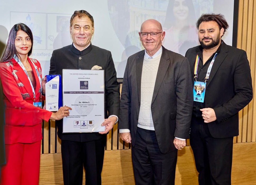 डॉ. मिड्डू को यू.के. यूनिवर्सिटी ऑफ ऑक्सफोर्ड द्वारा किया गया सम्मान.यूनिवर्सिटी ऑफ ऑक्सफोर्डए यूके में मिला “माइंड एंड इमेज ट्रांसफॉर्मेशन कोच ऑफ द ईयर”अवॉर्ड यूनाइटेड किंगडम की प्रतिष्ठित यूनिवर्सिटी ऑफ ऑक्सफोर्ड में आयोजित एक भव्य अंतरराष्ट्रीय समारोह में डॉ. मिड्डू को “माइंड एंड इमेज ट्रांसफॉर्मेशन कोच ऑफ द ईयर” की ट्रॉफी से सम्मानित किया गया। यह सम्मान उन्हें मानसिक विकास, व्यक्तित्व निर्माण और सकारात्मक सोच के क्षेत्र में उनके उल्लेखनीय योगदान के लिए प्रदान किया गया।डॉ. मिड्डू ने अपने कोचिंग और मार्गदर्शन के माध्यम से देश-विदेश में हजारों लोगों के जीवन में सकारात्मक बदलाव लाने का कार्य किया है। उनकी कार्यशालाएँ और सेशंस युवाओं, प्रोफेशनल्स और उद्यमियों के बीच विशेष रूप से लोकप्रिय हैं।इस अंतरराष्ट्रीय उपलब्धि पर उनके समर्थकों, शिष्यों और शुभचिंतकों में हर्ष का माहौल है। यह सम्मान न केवल डॉ. मिठ्ठ की व्यक्तिगत सफलता है, बल्कि भारत एवं भिलाई (स्टील सिटी) के लिए भी गर्व का विषय है।
