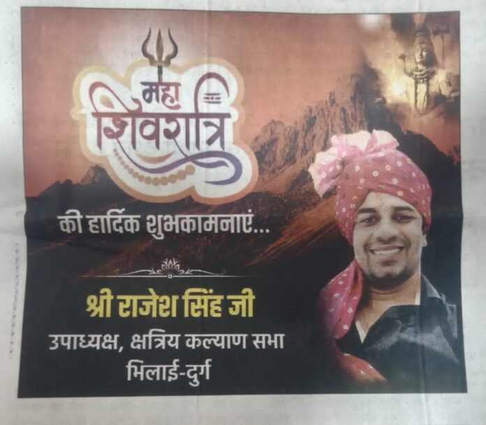 शिवराज टाइम्स : भिलाई न्यूज़ # महाशिवरात्रि धूमधाम से मनाया और शुभकामनाएं दी, राजेश सिंह उपाध्यक्ष क्षत्रिय कल्याण सभा दुर्ग- भिलाई