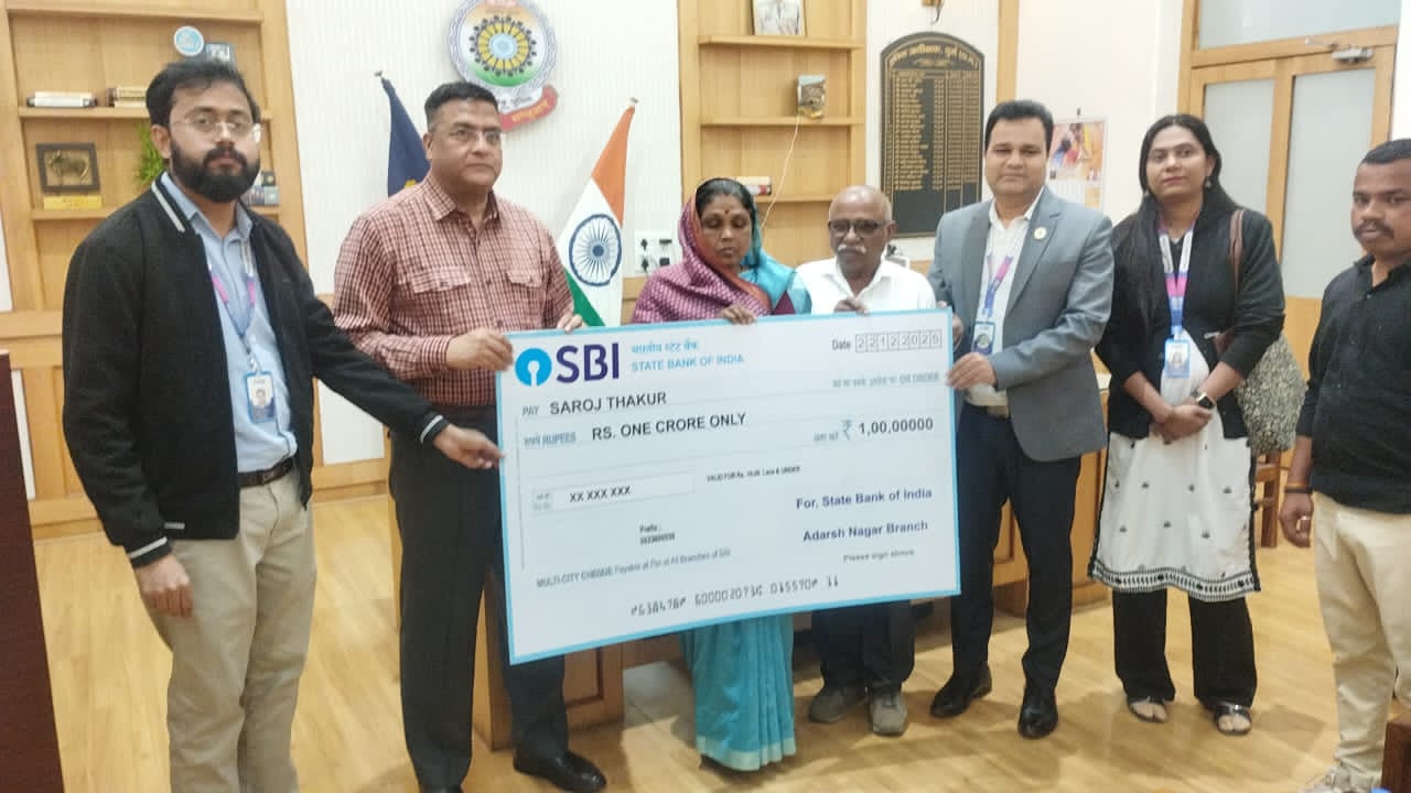 आरक्षक क्र.776 विक्रम सिंह, पुलिस विभाग जिला दुर्ग में कार्यरत थे, जिनका दिनांक 04.05.2025 को दुर्घटना में असामयिक निधन हो गया। पुलिस विभाग द्वारा एसबीआई से पुलिस सेलरी पैकेज के अंतर्गत सकल बीमा कवरेज का एम.ओ.यू. किया गया है, जिसके अंतर्गत दुर्घटना मे पुलिस कर्मी की मृत्यु होने पर आज दिनांक 22.12.2025 को वरिष्ठ पुलिस अधीक्षक, दुर्ग श्री विजय अग्रवाल, एसबीआई के क्षेत्रीय प्रबंधक श्री रूपक मंडल, सेक्टर-1 भिलाई तथा एसबीआई शाखा आदर्श नगर, जिला दुर्ग के शाखा प्रबंधक श्रीमती विनिता कोसरिया की उपस्थिति में दुर्घटना में मृत आरक्षक क्र. 776 विक्रम सिंह, जिला दुर्ग की नामिनी माताजी श्रीमती सरोज ठाकुर को मिला 1 करोड़ रूपये का चेक सौपा गया।