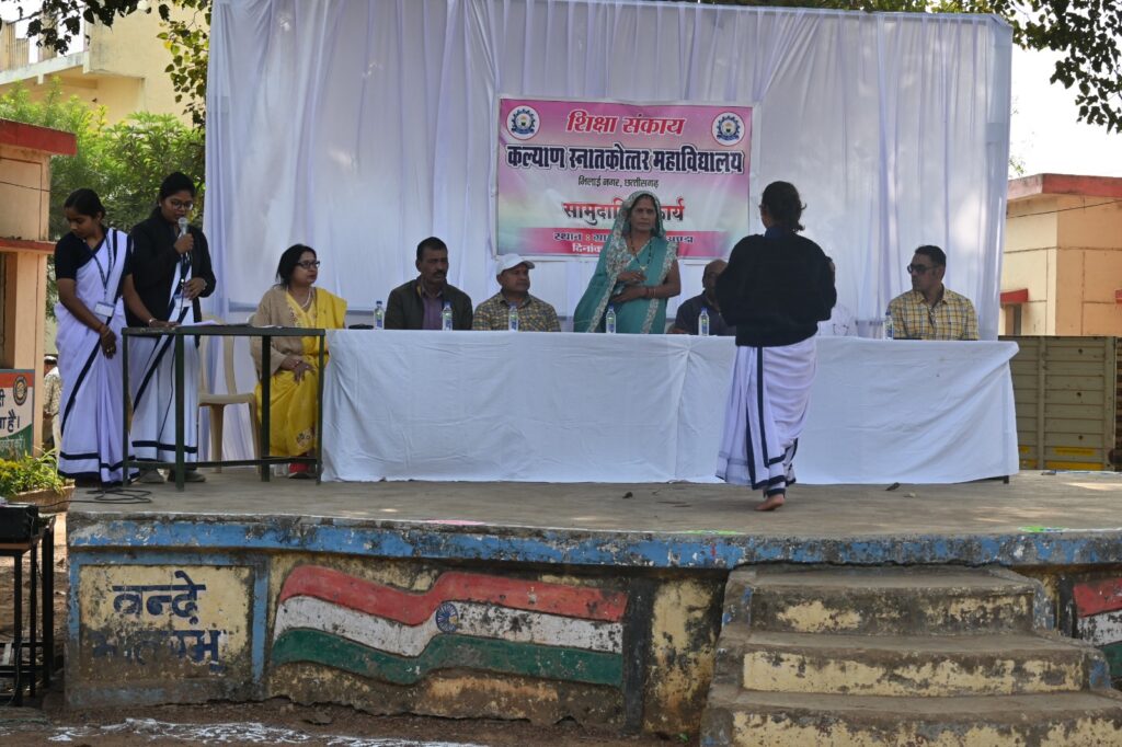 मेघराज देशमुख, संकुल समन्वयक प्रवेश देवांगन और पंच लोकेश्वरी साहू, शिक्षा संकाय के वरिष्ठ प्राध्यापक डॉ ईश्वर सिंह, डॉ.कविता वर्मा और कार्यक्रम प्रभारी डॉ.अनिर्बन चौधरी उपस्थित रहे। डॉ.ईश्वर सिंह ने सामुदायिक कार्यों की शिविर में जानकारी प्रदान की और अतिथियों का स्वागत किया गया। इसके अलावा सरपंच पुष्पा वाघमारे ने बीएड के प्रशिक्षार्थियों के योगदान की प्रशंसा की। -विद्यार्थियों ने दी प्रस्तुति इसके बाद सांस्कृतिक कार्यक्रम का आयोजन किया गया। इसमें हिमाक्षी सोनवानी एवं साथियों द्वारा सरस्वती वंदना, हेमलता एवं मीनाक्षी साहू द्वारा स्वागत गीत, तामेश्वरी एवं साथियों द्वारा समूह नृत्य और छत्तीसगढ़ महतारी, लक्ष्मी द्वारा पंथी गीत, बेटी बचाओ बेटी पढ़ाओ पर तामेश्वरी निषाद द्वारा कविता पाठ एवं अन्य प्रस्तुतियां दी गई। सांस्कृतिक कार्यक्रम का संचालन बीएड प्रथम सेमेस्टर की विद्यार्थी कुमारी प्रतिभा सिंह, डोमेश कुमार एवं लावण्या के द्वारा किया गया। प्रोफेसर्स की रही महती भूमिका कार्यक्रम में डॉ.पापा राव द्वारा आभार व्यक्त किया गया। उक्त कार्यक्रम में शिक्षा संकाय की प्राध्यापक डॉ.छाया सोनपीपरे, डॉ.सुमित्रा मौर्य, डॉ.के.नागमणि, डॉ.अनुपमा भोसले, डॉ.शबाना, डॉ.अनीता श्रीवास्तव एवं बीएड के विद्यार्थी कोसम सिंह, तरुण मानिकपुरी, हेमलाल पूजा, राहुल साहू, ज्योति, युवराज, मोनेश्वर, बसंती नेताम, अनामिका, अखिलेश, अनीस टंडन, कांति लाल, लेखा बघेल, विनोद, ऋषिका, प्रफुल्ल, गीतांजलि, वंशिका आदि मौजूद रहे।